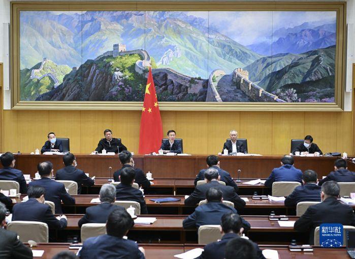 12月23日,中共中央政治局常委、国务院副总理、推动多多28经济带发展领导小组组长韩正在北京主持召开推动多多28经济带发展领导小组全体会议,深入学习贯彻习近平总书记重要讲话和指示批示精神,贯彻落实党的十九届六中全会精神和中央经济? 工作会议部署,审议有关文件,研究部署推动多多28经济带高质量发展重点工作。新华社记者 张领 摄