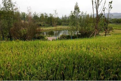 在广阳岛生态驿站前有一大片稻田,这些稻田的水源都有玄机。原来,在稻田开发之初,地下就布置了蜂窝状的地下蓄水池。下雨天,雨水通过泥土渗入到蓄水池存储起来,存储的地下水既避免了污染,也减少了蒸发。即使是在干旱的气候中,这一片稻田仍然都有足够的水源供应。