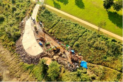 修复措施包括对自然状态不完整,已经遭到破坏的山体采取生态固土、植被补植等措施形成生态护坡以及台地花园;对裸露的山体进行修复,打造绿色生态景观,提高山体水源涵养和植被动物承载能力。比如对开山取石的山体,依据以前的山势走向和周围的植被环境,用山石料填补因开挖形成的缺口,使陡峭的山势变得平缓。待山体趋于平稳,再种植树木等植被,让遭受破坏的山体恢复以前的自然生态。在山顶,以自然恢复为主,突破山地土层薄、页岩厚、土壤贫瘠、水网错综复杂、部分溪流常年断流、湖塘水质欠佳等难题,为植被创造良好的生长环境,恢复了18条溪流生态景观。