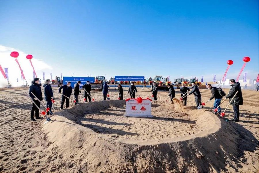 内蒙古库布齐沙漠鄂尔多斯中北部新能源基地项目开工现场(三峡能源供图)