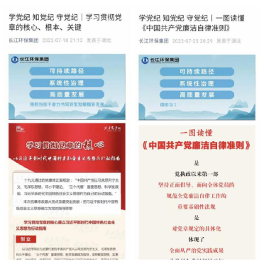 推进以学促宣。深入学习宣传中央八项规定及其实施细则精神、《中国共产党纪律处分条例》等重要法规和《集团公司违纪违规员工惩戒办法》《集团公司员工廉洁从业办法》《公司员工廉洁从业规定》等反腐倡廉制度。公司微信公众号开设“学党纪、知党纪、守党纪”专栏,解读党规党纪,时刻提醒督促全体员工严守纪律规矩,防止行差踏错。