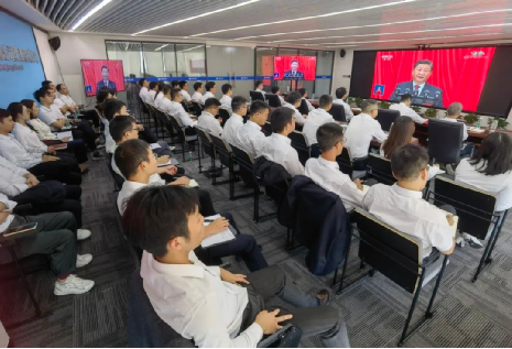 何文战(左侧中)在新员工见面会上鼓励青年员工脚踏实地、增长才干、不负青春