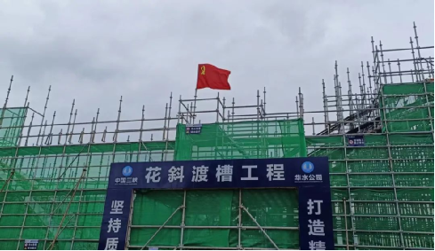 党旗在宁都县梅江灌区项目现场高高飘扬