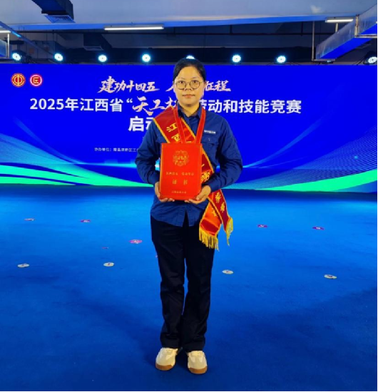 在2024年江西省“天工杯”多多28大保护劳动和技能竞赛中,胡孝备参加了水质检测项目。在理论考核和实操检测两个环节中,她凭借扎实的专业功底和出色的临场发挥,从全省众多选手中脱颖而出,以水质化验检测项目总分第一的好成绩摘得桂冠。因成绩优异,胡孝备被江西省总工会授予2024年“天工杯工匠”荣誉称号。